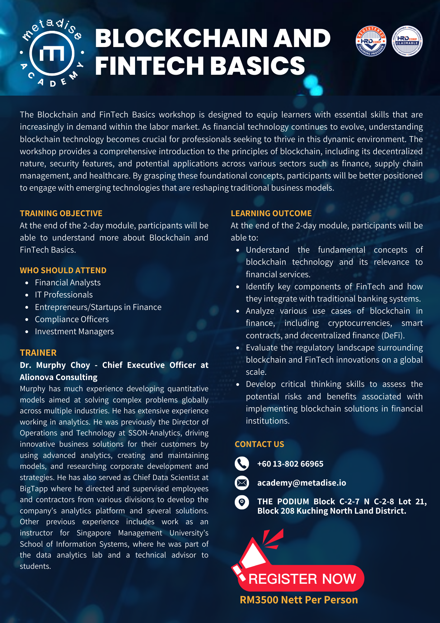 At the end of the 2-day module, participants will be able to understand more about Blockchain and FinTech Basics
